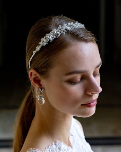ヘッドドレスには定番のティアラや生花だけではなく華やかにビジューが施されたものやクラシカルなボンネなどさまざま
